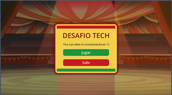 Desafío Tech es una experiencia interactiva que convierte el conocimiento en tecnología en un reto emocionante. A través de una dinámica llena de ritmo, los jugadores ponen a prueba sus habilidades en temas clave de TI mientras se divierten. ¡Descubre todo el potencial que existe en el mundo tecnológico!